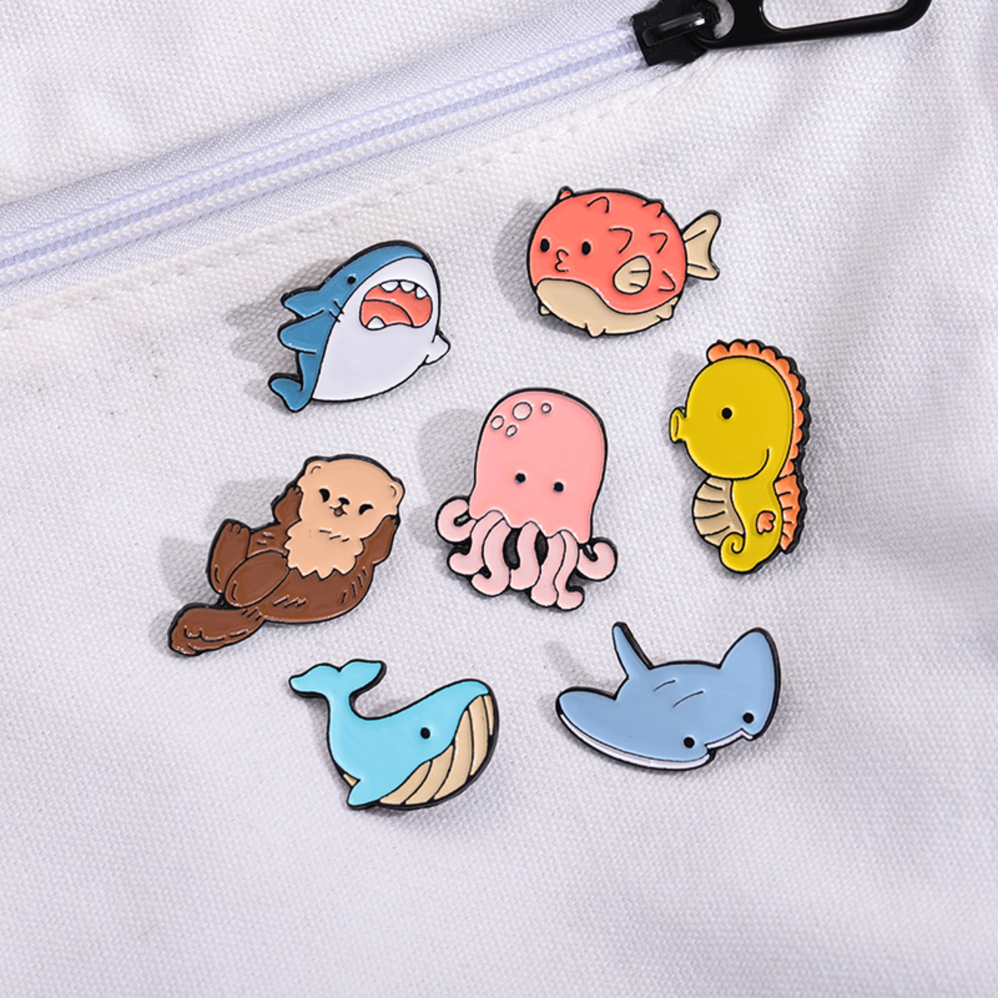 Cada pin tem cerca de 4 × 5 × 2 cm e pesa apenas 7 g — super leve, perfeito para usar sem incomodar.