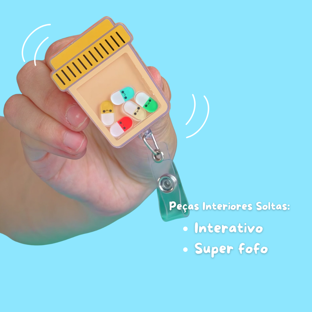 Caixa de Comprimidos Porta-Crachá Retrátil