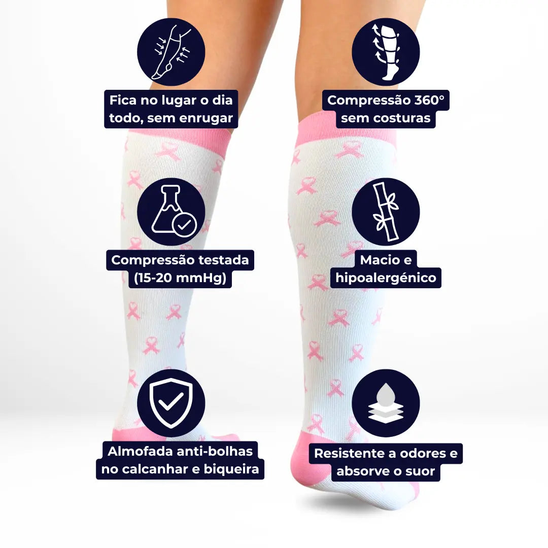 Exercem uma pressão suave e gradual nas pernas, mais forte junto ao tornozelo e a diminuir à medida que sobe. Isso ajuda a dar mais conforto no dia a dia ou durante longas horas de pé.